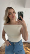Body poliamida com feixo. Possui bastante elastano.