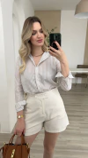 Aquela peça essencial e atemporal que toda mulher precisa! Com tecido leve e toque macio, essa camisa oferece caimento perfeito e versatilidade para looks do dia a dia ao office look.